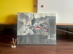 Stretched oil landscape on canvas done by Chinese Artist Yong Li, dated and signed lower right and also verso, capturing a traditional architectural scene Fenghuang County, Hunan Province, China, rendered ina strikingly textured and semi-abstract style. The composition is dominated by rooftops rendered in a layered, almost cubist fashion, with gray and muted tones conveying the quiet elegance of ancient Chinese towns. The rooftops—some curved and others angular—evoke classic southern Chinese architecture, particularly the upturned eaves and tiled roofs.