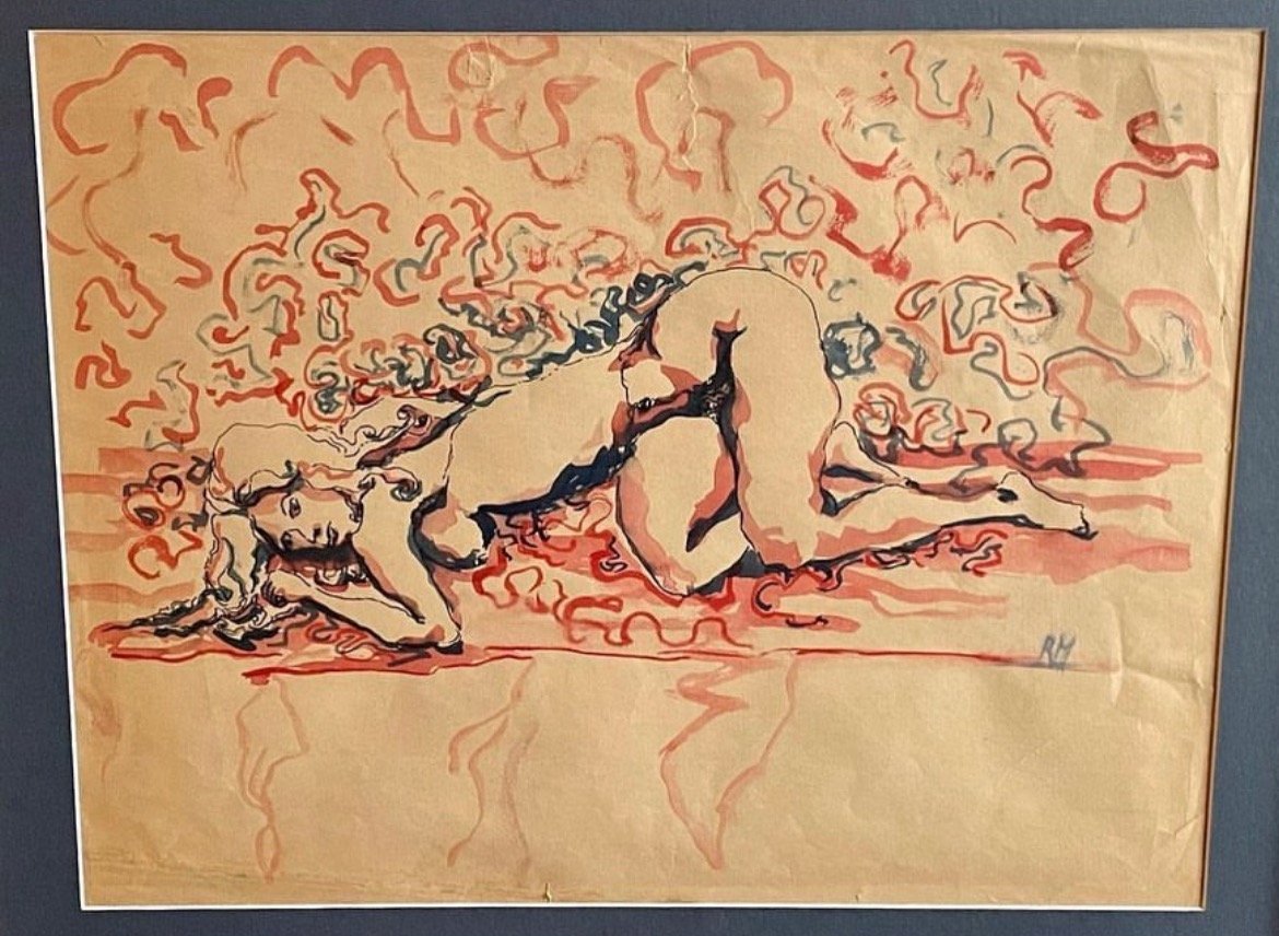 Beautiful nude watercolour study on paper by the renowned late Hungarian Canadian artist, Rozsa Mezei, signed “RM” lower right, professionally framed with anti-reflective glass.