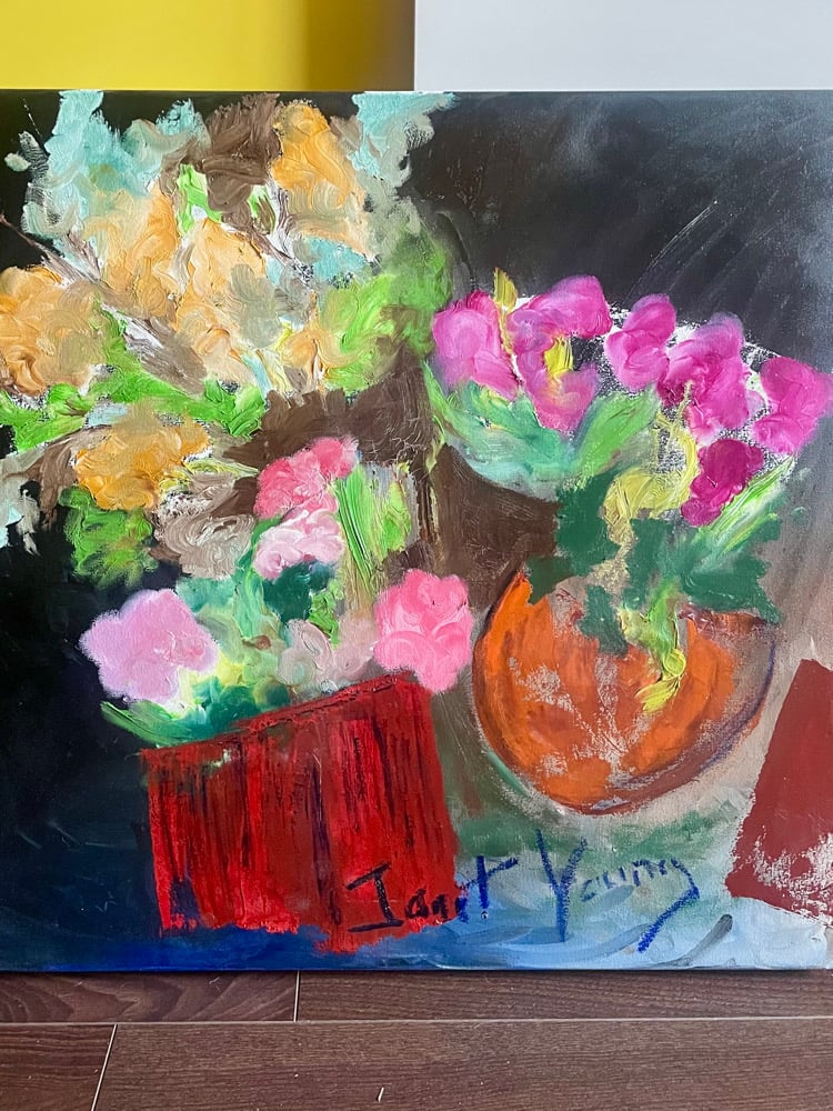 The bold brushwork and vibrant color contrasts give the piece a sense of immediacy and emotional spontaneity. Love the abstract expressionist spirit, where the flowers bloom from the artist’s uninhibited imagination.