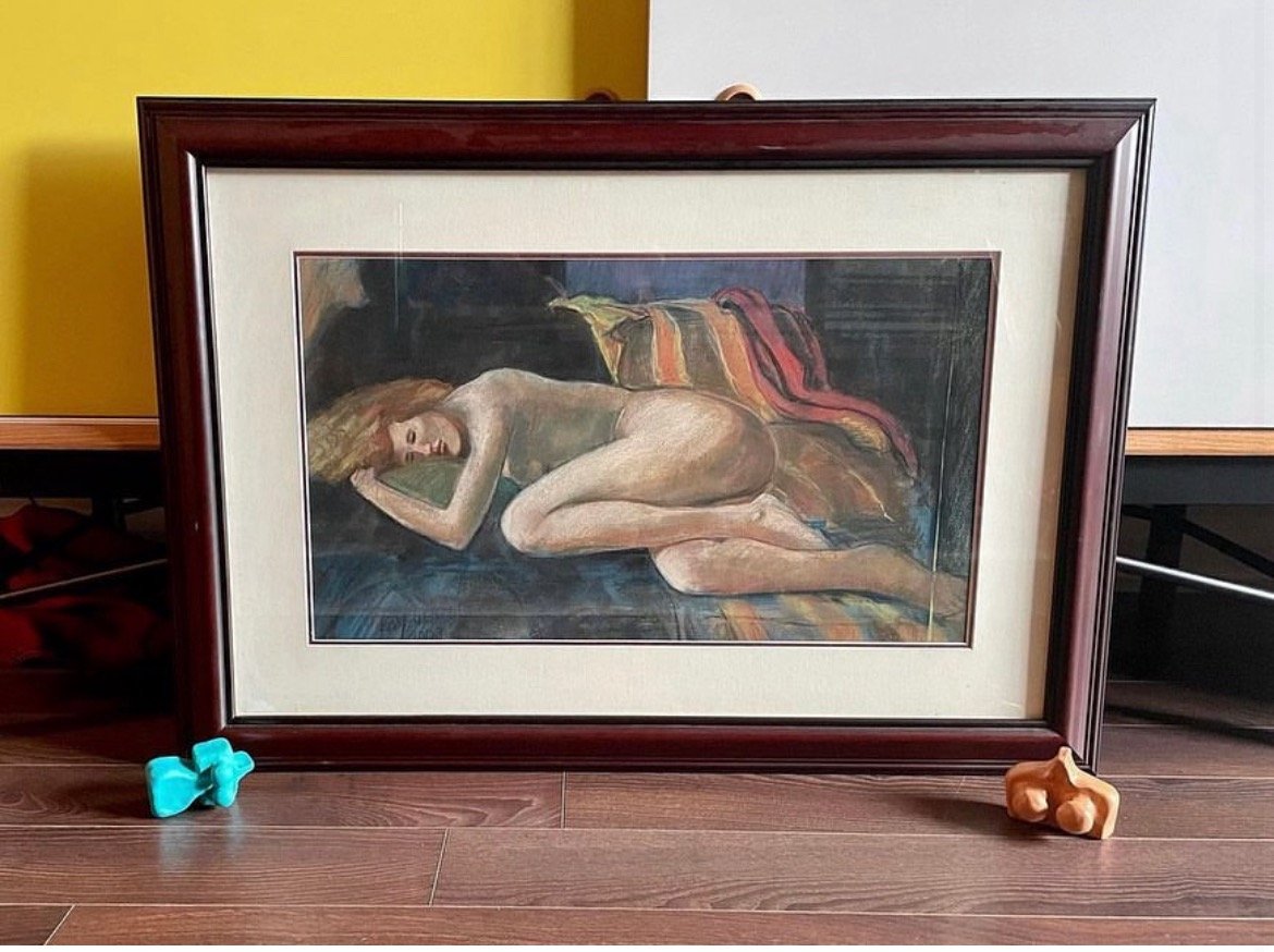Beautiful pastel nude drawing, signed Ray Gentle, dated 2003 to lower left. Not much is known about the artist, but this is certainly a confidently executed drawing with delicate shading and wonderful use of colour.. The stylized figure seems have that Mondigliani touch, wonderful!